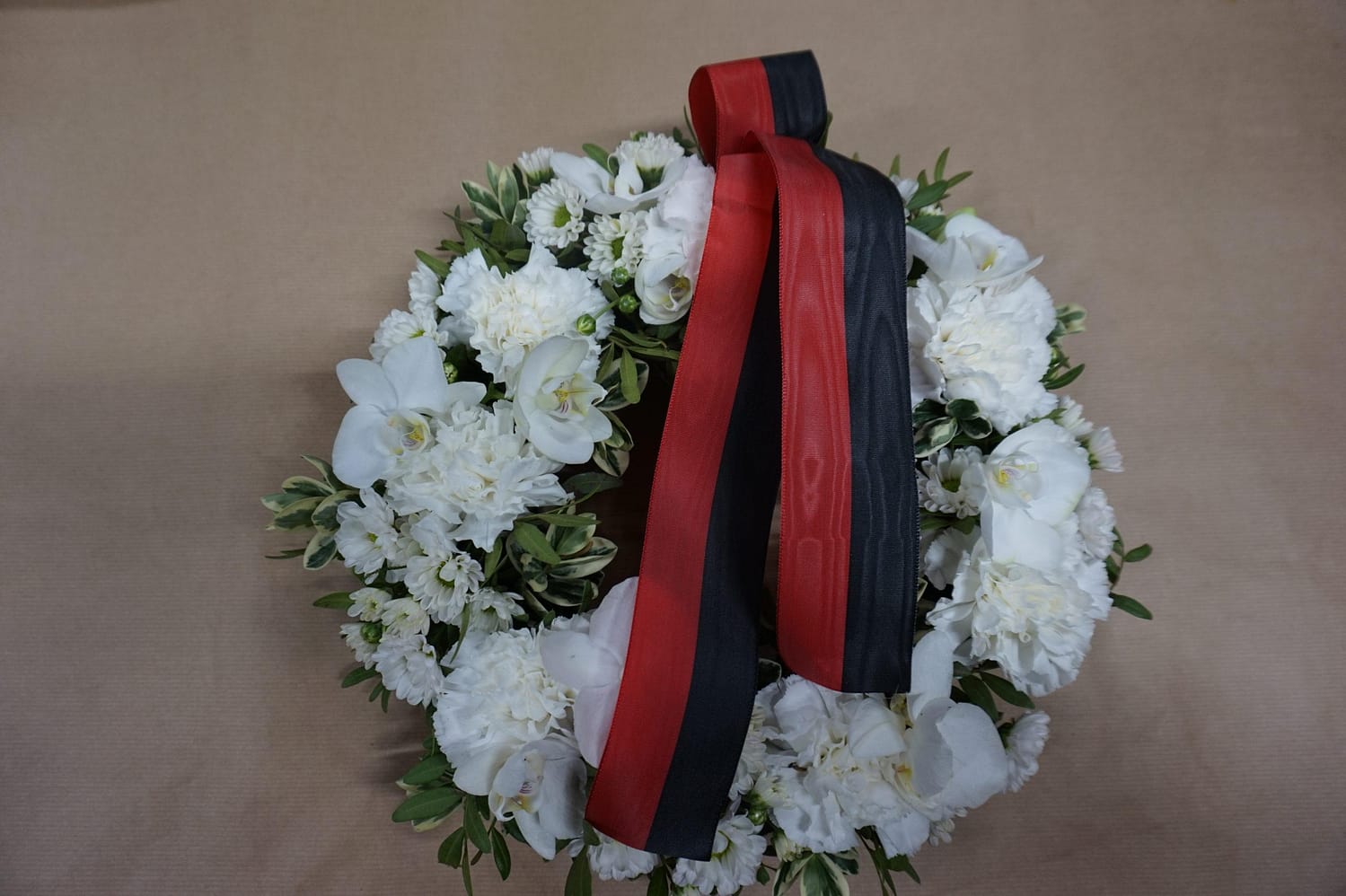 Kokovalkea kukitettu seppele halkaisija 40cm.
