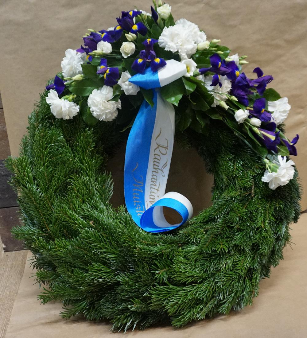 Flowered pine wreath diameter 60cm.