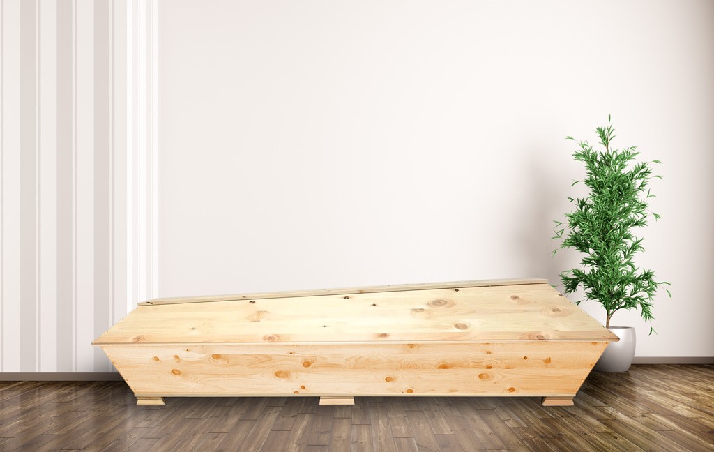 Suoratuhkaus arkku, Valmistaja: Barem OY, Yksinkertainen päällystämätön mänty arkku.